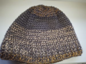 Un bonnet au crochet – bord côtes 5 cm – fil doublé – mélange laine et acrylique
