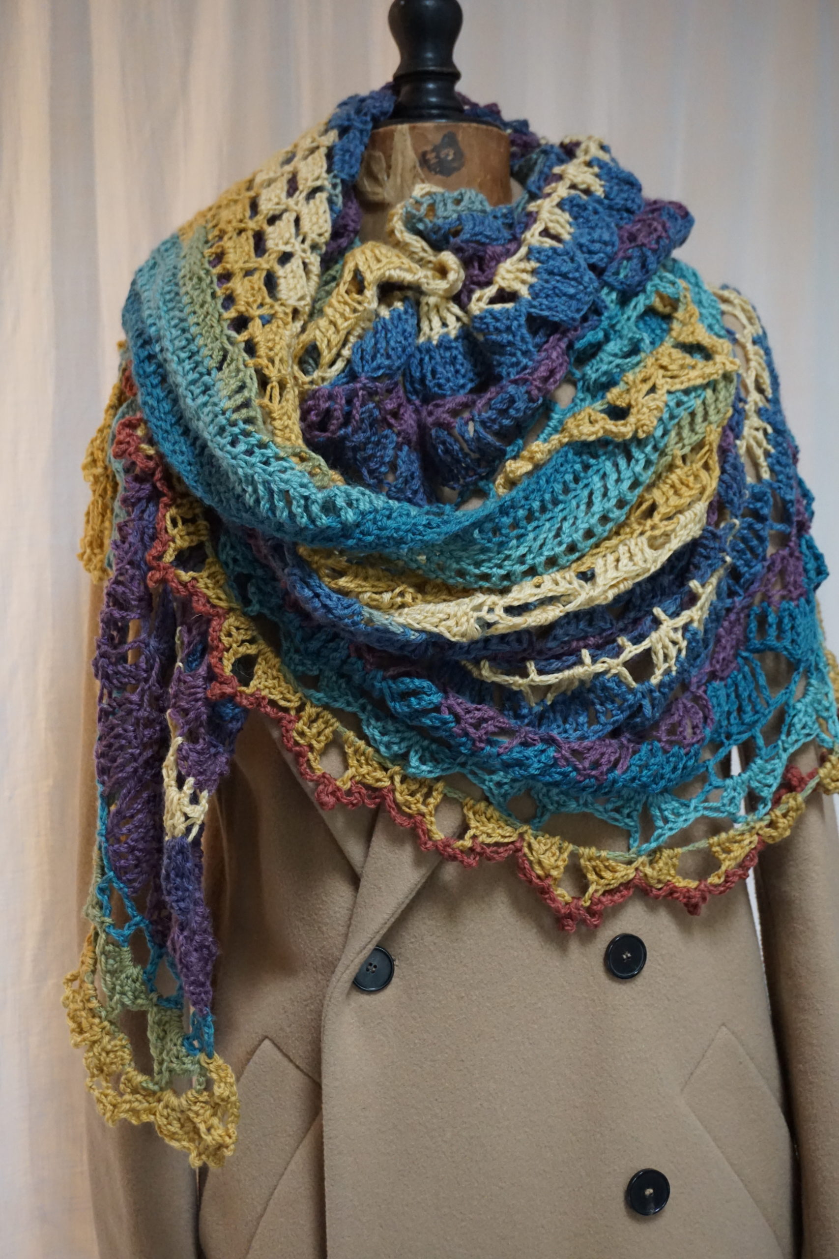 Superbe écharpe bohème XXXL à enrouler plusieurs fois autour du cou pour plus de chaleur et de confort. Couleurs chatoyantes – très beau dégradé et points effets dentelle. Un très beau produit !!
