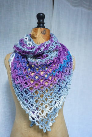 Léger, doux, vaporeux, chaud, délicat, vintage, … composé de laine et d’acrylique ce chèche/châle au prix très abordable et un peu rétro se porte légèrement autour du cou ou sur les épaules et met en valeur votre tenue avec ses couleurs dégradées allant du gris au mauve soutenu.