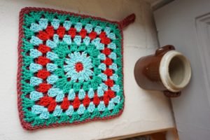 Une manique tout en couleurs à accrocher pour un décor bohème pop de votre cuisine. Effet garantie.