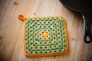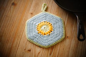 Qui aurait cru il y a quelques années que ce serait tendance de pendre une manique réalisée au crochet dans sa cuisine ! Un vieux truc de grand-mère le crochet …