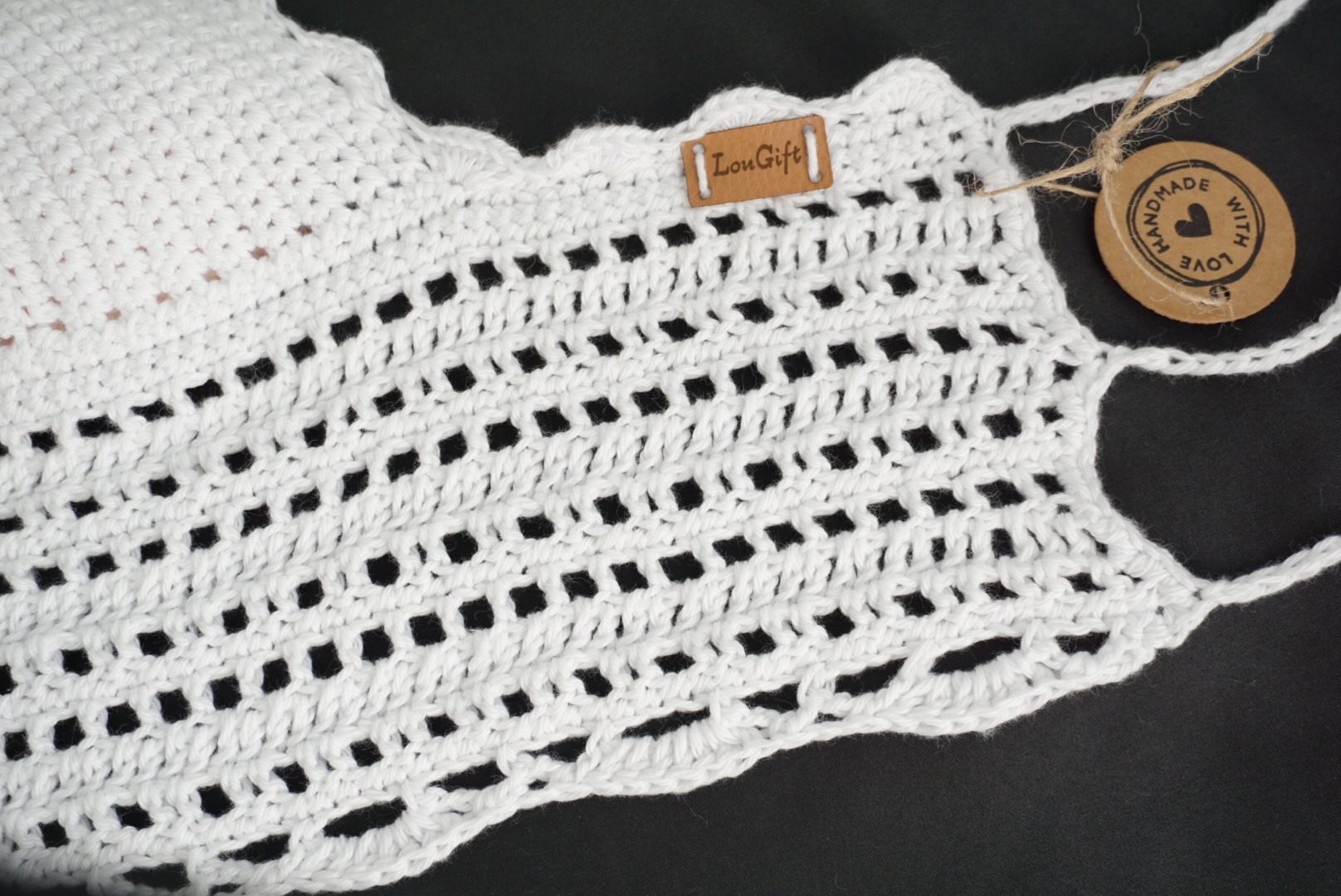 Très jolie et féminine, la brassière en coton frais crocheté effet dentelle.