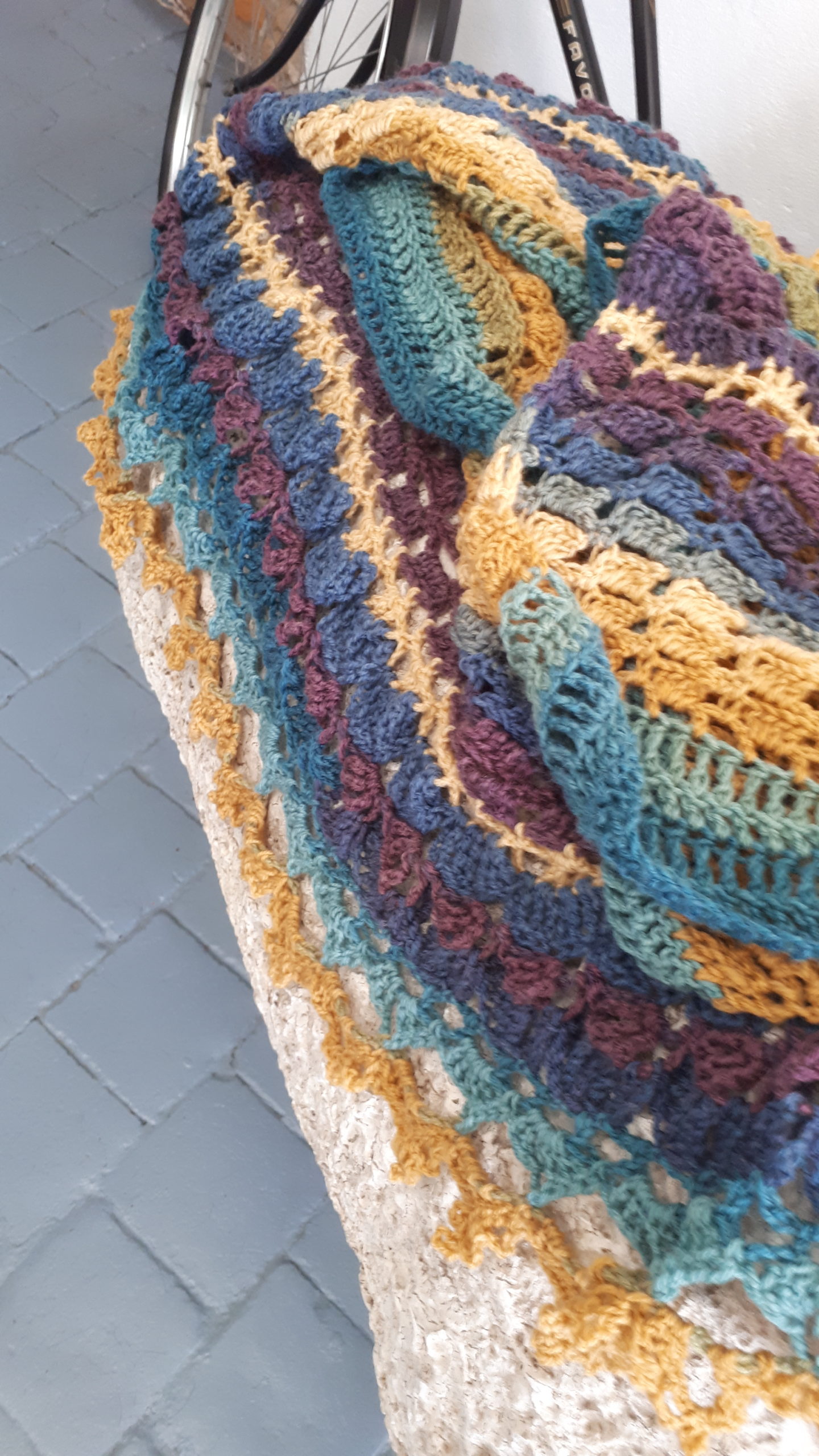 Superbe écharpe bohème XXXL à enrouler plusieurs fois autour du cou pour plus de chaleur et de confort. Couleurs chatoyantes – très beau dégradé et points effets dentelle. Un très beau produit !!