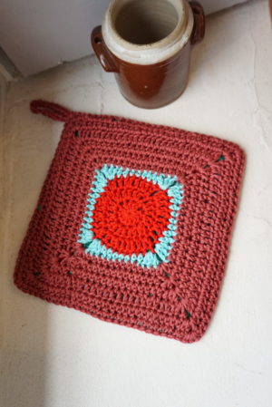 Une manique tout en couleurs à accrocher pour un décor bohème pop de votre cuisine. Effet garantie.